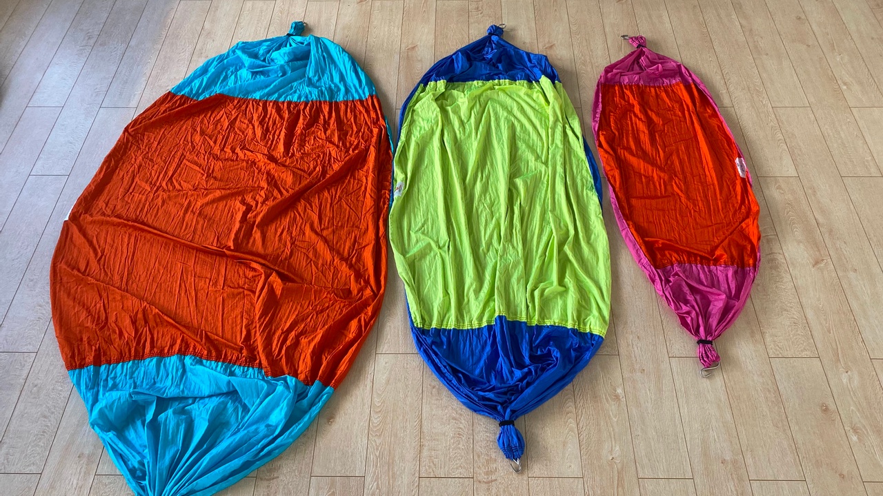 - Tela de paracaídas original certificada a 600 libras de soporte.
